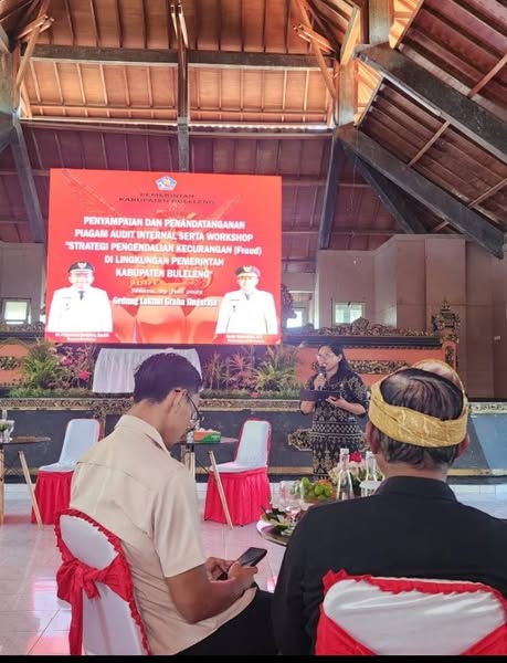 Kepala Bagian Kesejahteraan Rakyat (Kesra) Setda Kabupaten Buleleng, Ni Nyoman Sukadani, S.Sos, menghadiri rapat penyampaian dan penandatanganan Internal Audit Charter yang dirangkaikan dengan Workshop Strategi Pengendalian Fraud pada Selasa (29/07), bertempat di Gedung Laksmi Graha Singaraja.